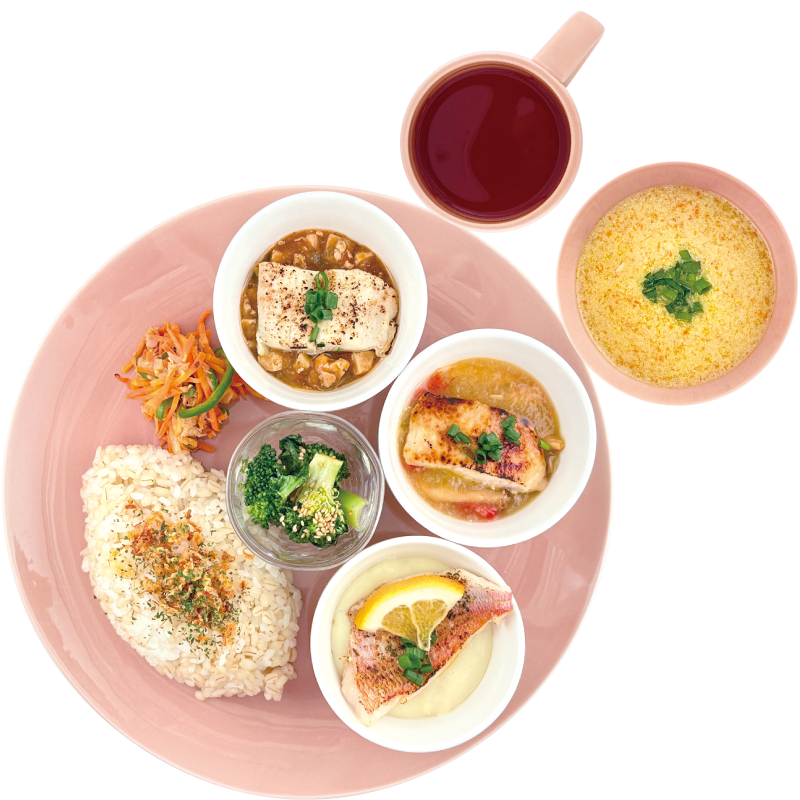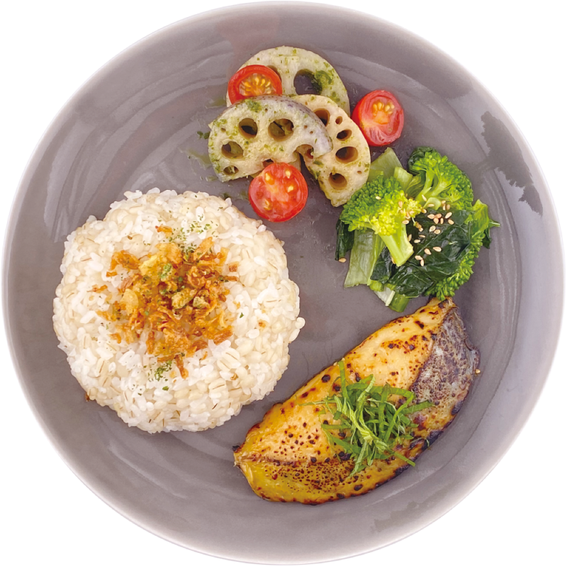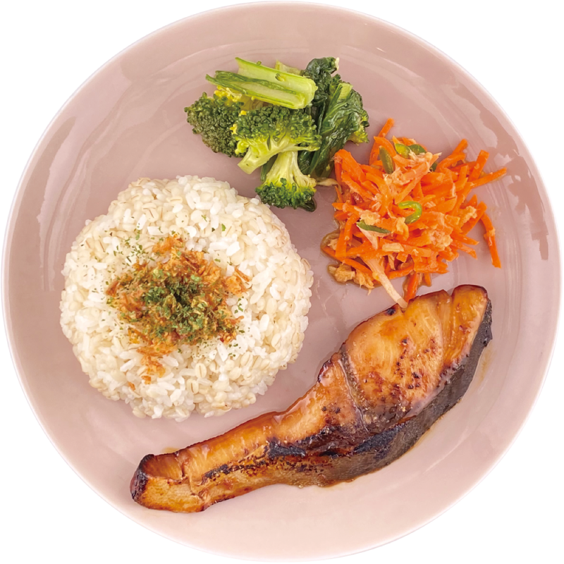 サカナともち麦ご飯に加えて、ヘルシーな野菜デリを、いつでも複数ご用意。お好きな野菜デリをお選びください。